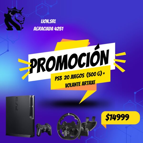 PS3 25 JUEGOS 500 GIGAS + VOLANTE ARTAXE 090